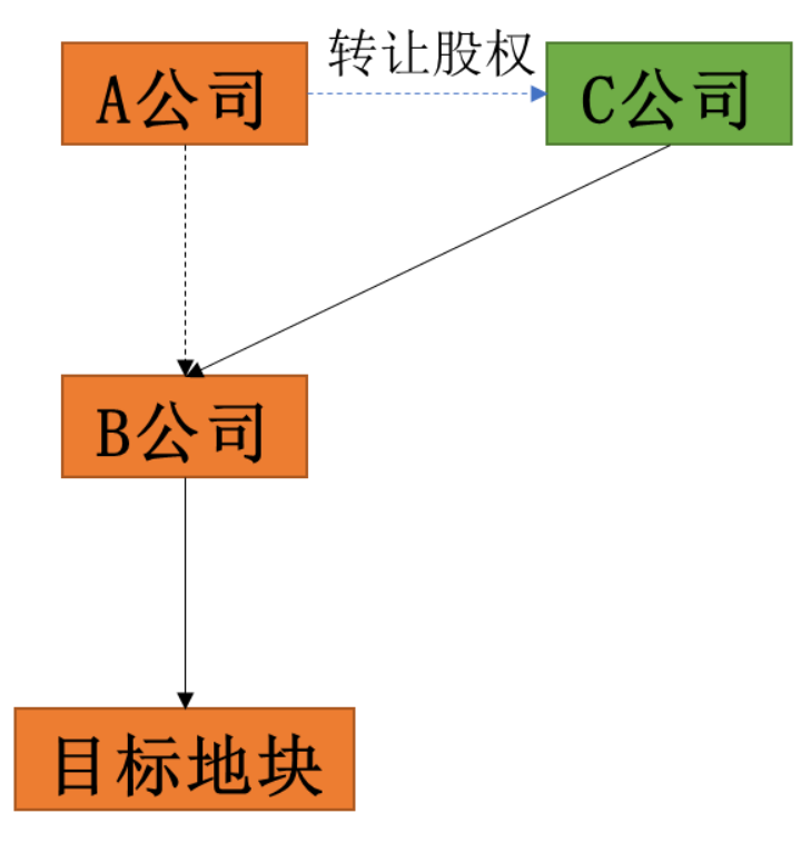 回到前面抛出的问题,假设母公司A名下有一块土地,那么可通过划转的方式将该土地权属变更至A公司的全资子公司B公司,收购方C可向B公司股东收购100%股权,从而取得目标土地的开发权益。