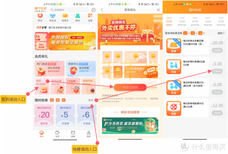 路径:"中国建设银行"APP - 信用卡 - 增值礼遇 - 更多 - 积分刷刷乐