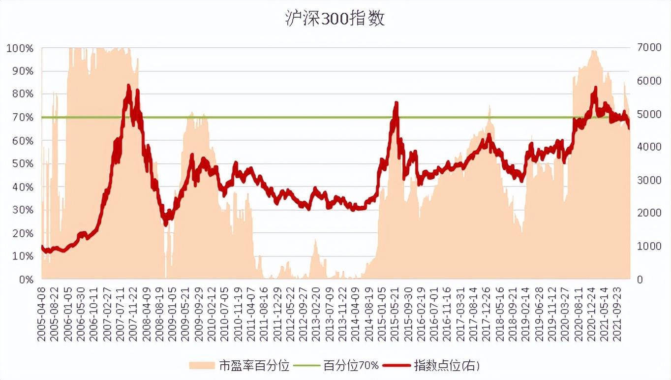 一般,当市盈率、市净率百分位大于70%、80%,我们就认为高估了,风险相对较高,追求稳健的投资者可以逐步减仓、卖出了。