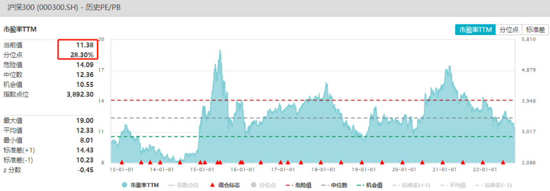 当前沪深300 PE 11倍,正处于近10年28%的位置,机会显著。
