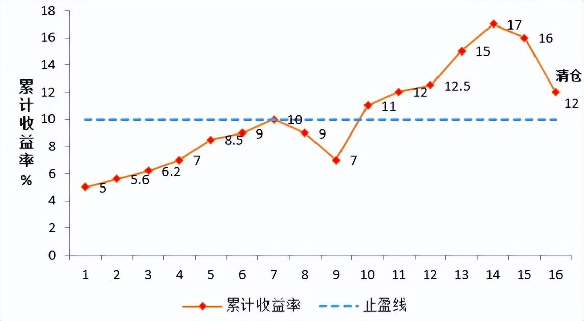 首先,设定一个止盈信号线,也就是目标收益率(如图中的10%);