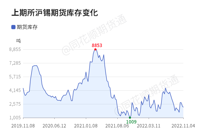11月4日沪锡期货库存录得2202.00吨,较上一交易日减少150.00吨。