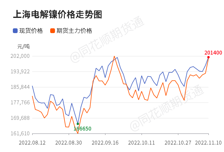 11月10日上海1#锡锭现货价格报价169500.00元/吨,相较于期货主力价格(169090.00元/吨)升水410.00元/吨。