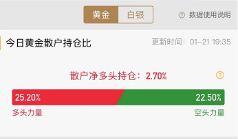 散户持仓数据上,黄金散户净多头持仓为2.70%,较上个交易日的7.34%下降了4.64%,表明散户多头一方有所下降,而散户空头一方则开始增强。