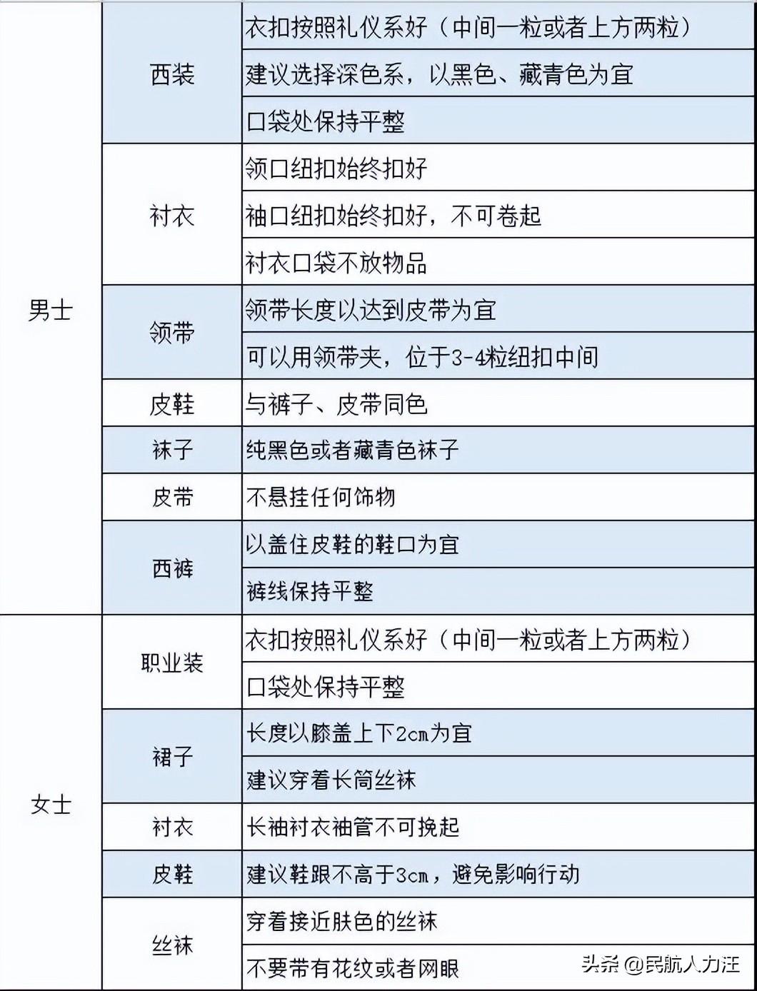 下方是民航人力汪根据民航地面人员着装指导,整理的建议清单供大家参考:
