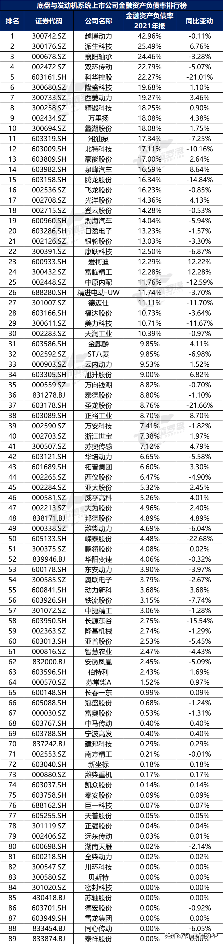 图19:底盘与发动机系统上市公司金融资产负债率排行榜