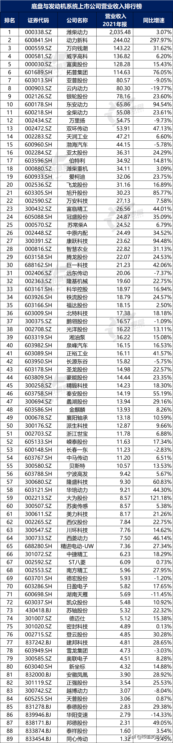 「汽车观察」底盘与发动机系统上市公司高质量发展排行榜-发动机生产上市公司