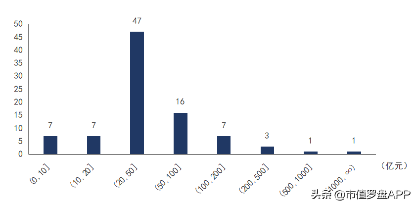 图1:2022年6月30日底盘与发动机系统上市公司市值分布(单位:家)