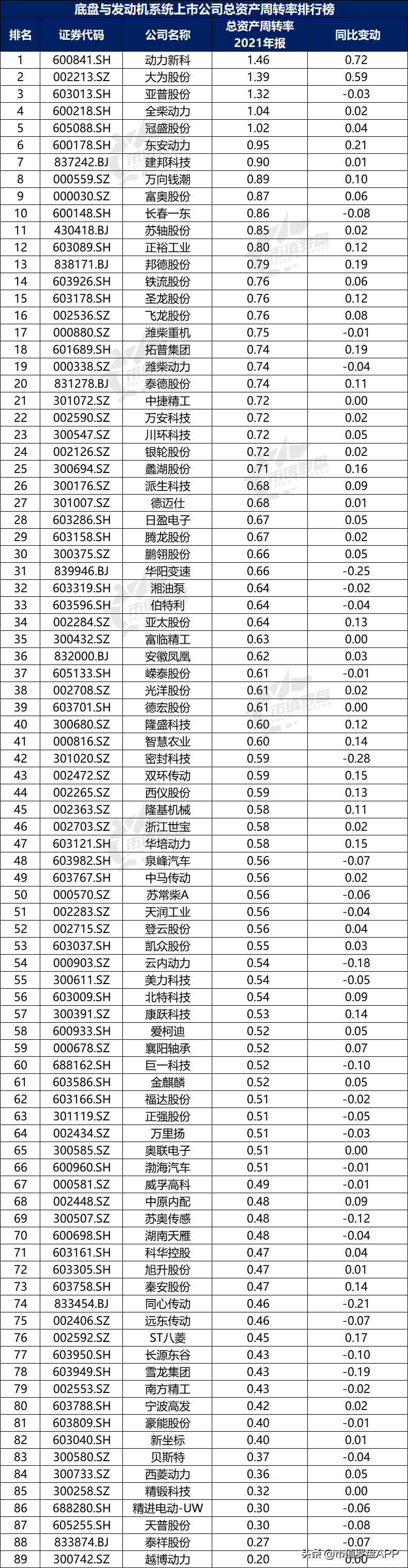 图13-2:底盘与发动机系统上市公司总资产周转率排行榜