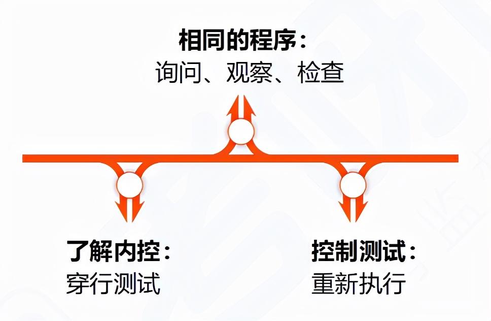 所以,根据不同的目的,应当执行相应的审计程序,但考试中经常会提及“为了确定内控是否运行有效,注册会计师执行了穿行测试,结果满意”,这个做法就是错误的。运行有效是通过控制测试才能达到的目的,穿行测试只能了解内控,看内控是否得到执行而已。这也是主观题关于它们两个最喜欢考查的一个考点。