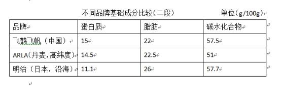 从这张表上我们可以看到无论是国产的还是进口的,无论是高端的还是谱图的配方奶粉,他们的基础成分—蛋白质、脂肪、碳水化合物的含量变化不大。所以,根据家庭经济情况来选择,不必盲目追求高价位。